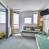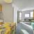 Cocina integrada con 2 placas eléctricas, microondas, nevera, lavavajillas, tostadora, hervidor de agua y cafetera.