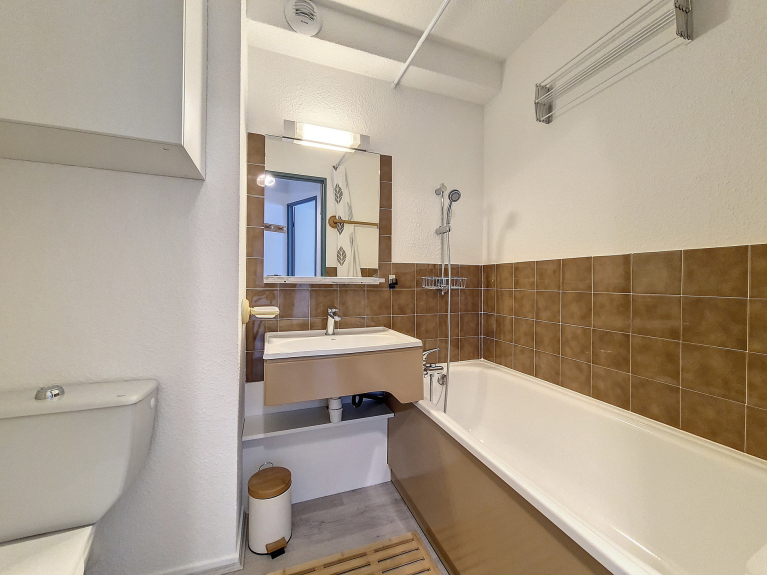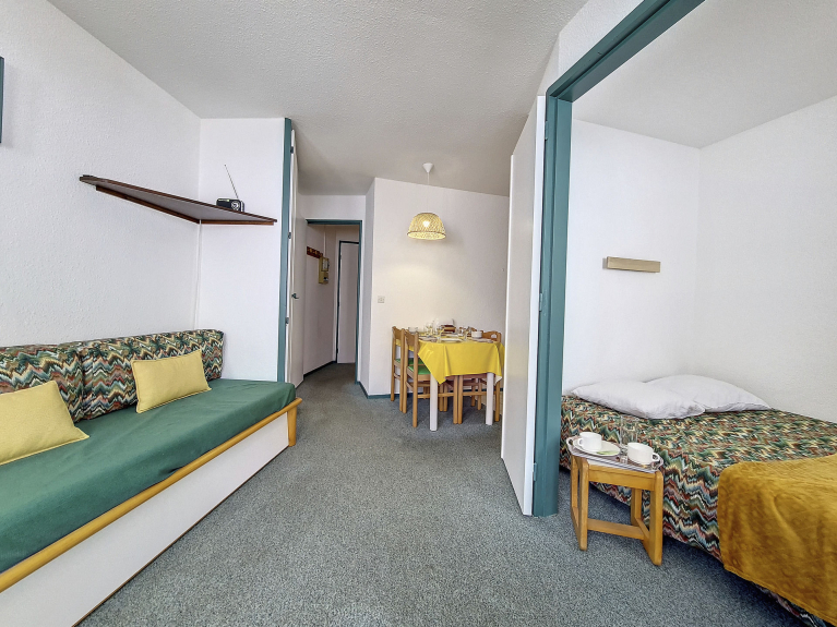 Piso de dos habitaciones de 24 m² equipado para 4 personas. Está situado en el 1er piso con ascensor y tiene un balcón orientado al oeste con vistas a una hermosa cadena montañosa.