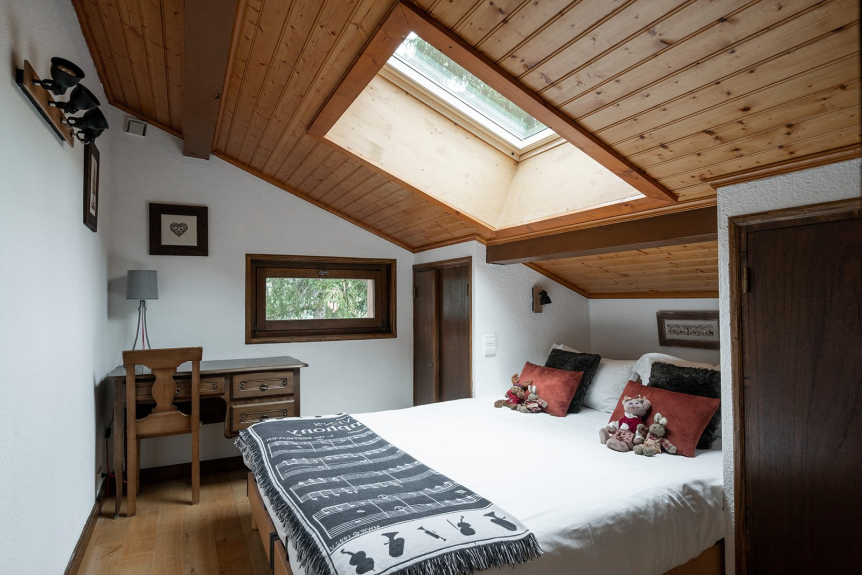 Un dormitorio (cama: 200*200cm), 2 literas, un cuarto de ducha y un aseo completan la zona de la planta baja.