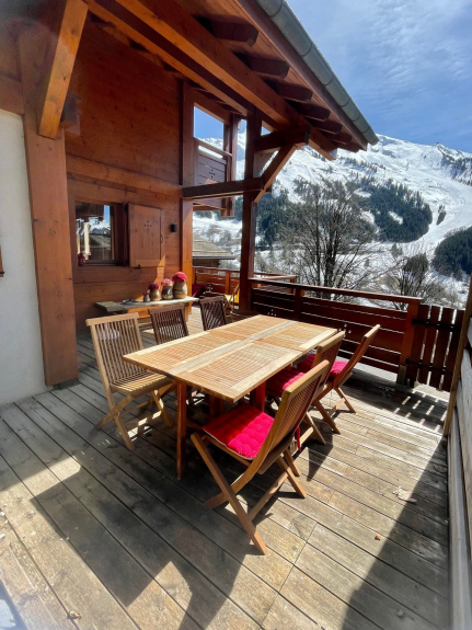 Chalet saboyano adosado de 3***. 5 habitaciones - 3 dormitorios - 8 plazas, 2 baños, 1 gran terraza orientada al sur, comedor, salón, lavadero, bodega, garaje...