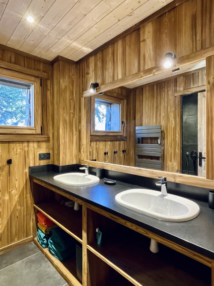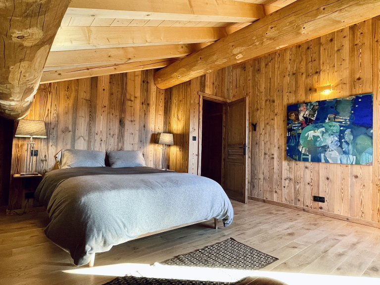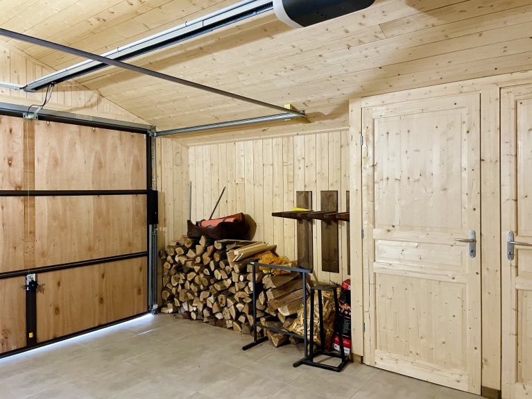 El chalet (210 m2) dispone de 5 habitaciones independientes, una sauna y un salón con chimenea para realzar sus veladas de garaje.