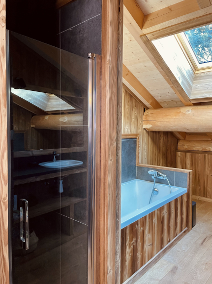 1 cuarto de baño amplio y luminoso con ventana Velux, bañera y ducha
