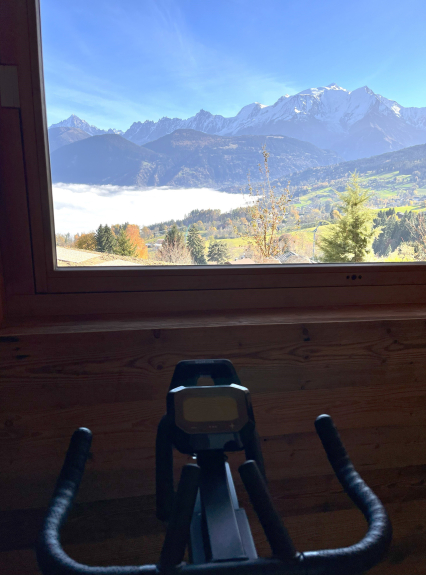 - 1 sala de fitness con una gran sauna y un home trainer con impresionantes vistas al Mont Blanc