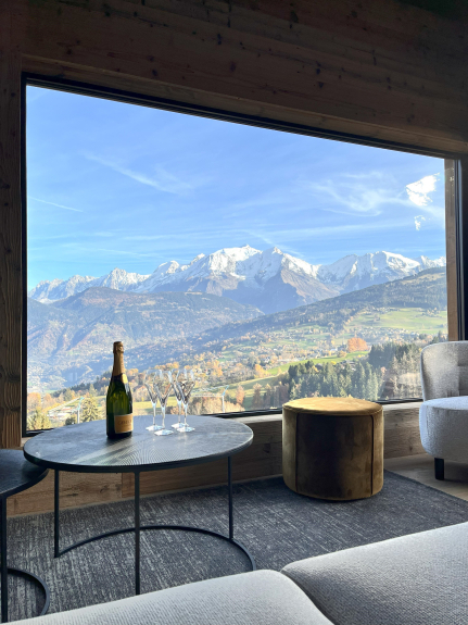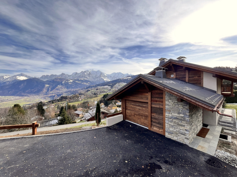 Magnífico chalet de 150 m² recién construido con materiales de calidad y prestaciones de alta gama, que ofrece unas vistas impresionantes del macizo del Mont Blanc, la cordillera de Fiz y todo el valle.