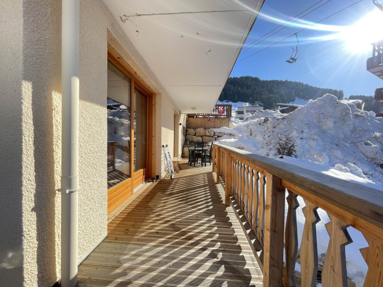 Nos hemos enamorado de este piso de 80 m², totalmente renovado a finales de 2024 con bellos materiales que combinan modernidad y espíritu saboyano. Está idealmente situado al pie de las pistas del Mont Rond, puerta de entrada a los 192 km de pistas del Espace Diamant, con una panadería, tiendas de deportes y restaurantes abiertos todo el año en invierno. Un auténtico capullo de montaña para sus futuras vacaciones en familia o entre amigos.