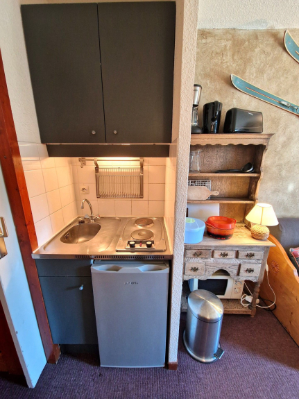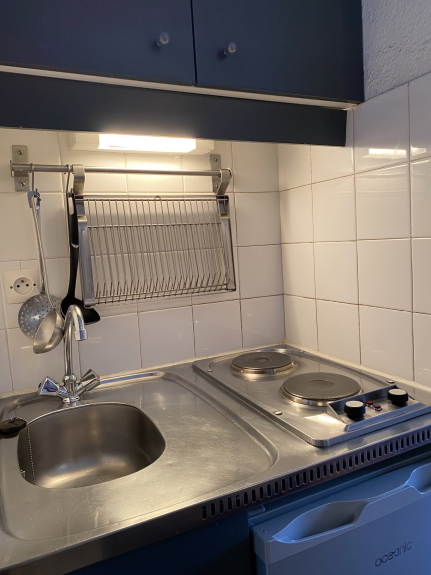 - Rincón cocina con 2 placas eléctricas, frigorífico, microondas.