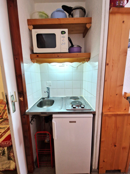 - Rincón cocina con 2 placas eléctricas, frigorífico, microondas.