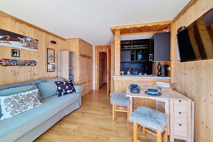 Un apartamento de 25 m² en la 3ª planta de la residencia con un balcón orientado al sur que ofrece magníficas vistas de la estación.