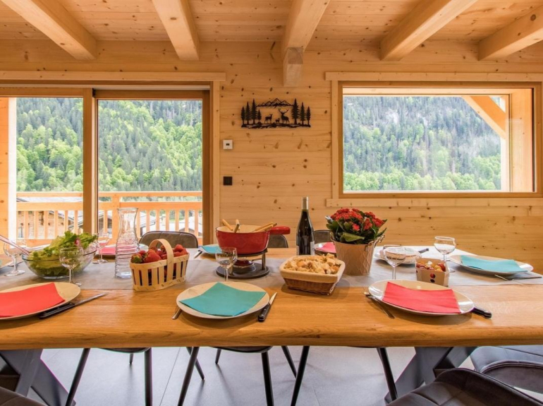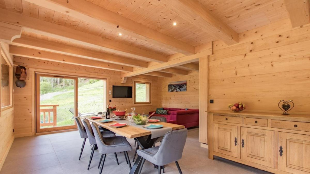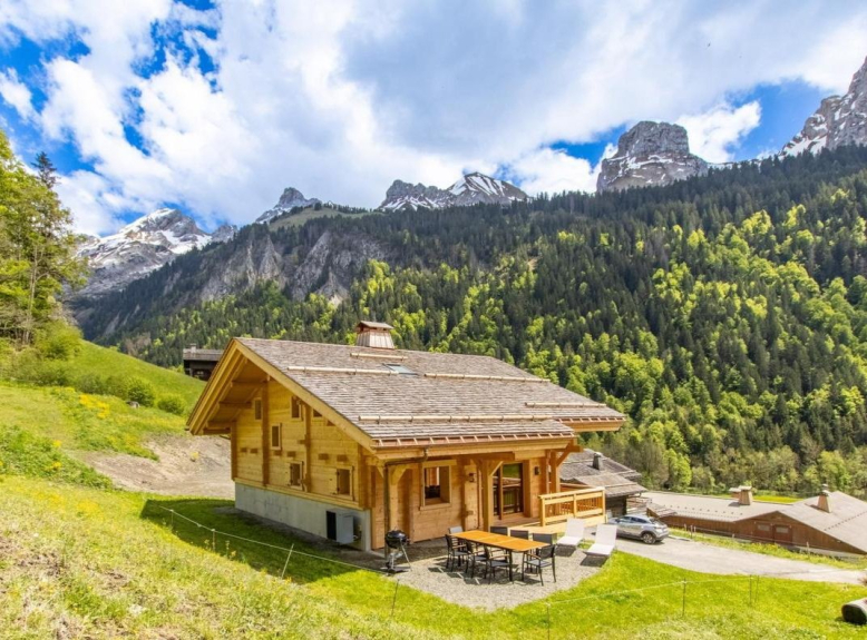 Magnífico chalet independiente nuevo con vistas a la cordillera de Aravis y a su punto más alto, la Pointe Percée. Situado en una aldea muy tranquila. Orientación sur. A 5 km del centro del pueblo de Le Grand-Bornand. A 500 m de las pistas de esquí de fondo, del campo de golf y de la parada del autobús gratuito también a 500 m.