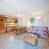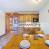 Cocina americana con 4 placas vitrocerámicas, campana extractora, frigorífico, microondas, lavavajillas, cafetera, tostadora, hervidor de agua.