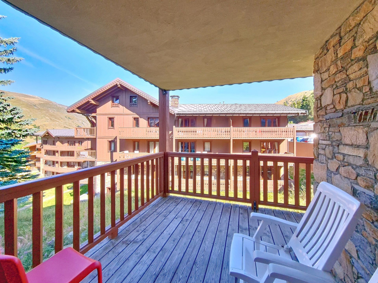 Esta residencia, situada a la entrada de la estación, tiene un aire tradicional saboyano. Venga a descubrir sus pisos funcionales, su espacio de relajación con piscina, sauna, hammam, sala de fitness, tienda de esquí y servicio de transporte gratuito al centro de la estación, a sólo 1 km.
