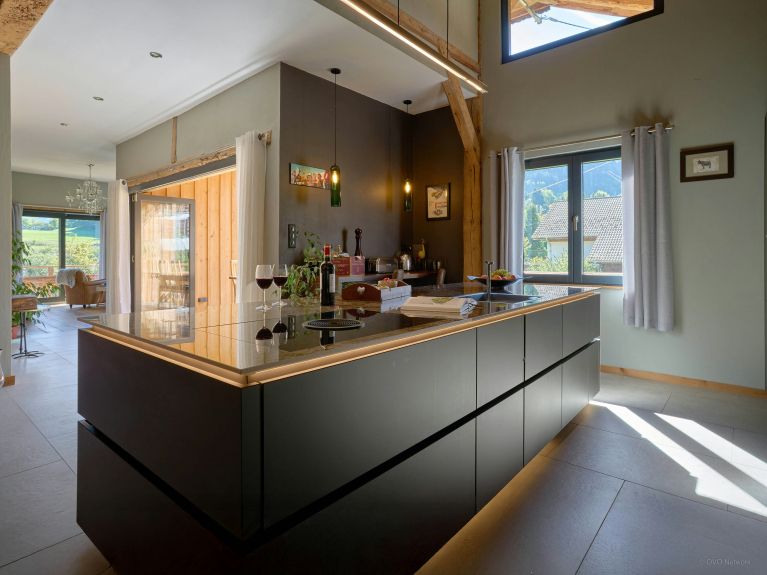 La Grange Neuve encarna el equilibrio perfecto entre el encanto rústico y la elegancia contemporánea. Recientemente renovado con esmero, puede alojar hasta nueve viajeros en un confort contemporáneo mezclado con las características originales del antiguo granero saboyano.
