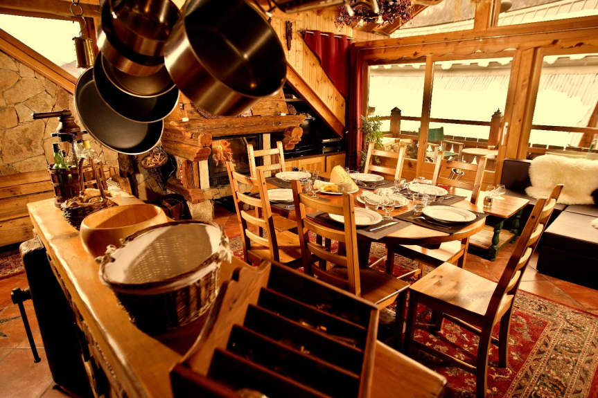 Muy buenas comodidades: decoración refinada de estilo montañés (materiales nobles y naturales), muy bien equipada (cuarto de ducha privado para cada habitación, equipo de cocina profesional, digicode, HIFI de calidad, DVD, WIFI, Satélite, cama de bebé...), vista panorámica, ventanal de 3m x 2m. Muy cómodo y cálido.