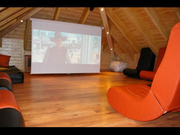 El chalet cuenta con una sala de cine y una gran sala de juegos, y puede alojar a grupos más grandes bajo petición.