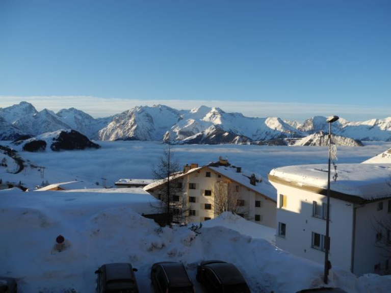 Piso del propietario calificado con 4 estrellas. Situado en el centro de la estación, a pie de pistas (retorno ski in ski out), a 5 minutos de todos los comercios, de la piscina y de la pista de hielo, con aparcamiento, el piso ha sido completamente renovado y dispone de todas las comodidades (cocina equipada, lavadora, TV, secador de zapatos, guardaesquís, etc... ). El piso ocupa toda la planta. Tiene una magnífica vista orientada al sur con grandes ventanales que se abren a una gran terraza con muebles de jardín. El interior está decorado en estilo montañés con revestimiento de madera y una estufa de leña en el salón. El piso consta de un salón-comedor de unos 37m² y 5 dormitorios: 3 dormitorios con camas dobles, 1 dormitorio con 2 camas individuales y 1 dormitorio con 6 camas (3x2 literas). Tres cuartos de ducha y dos aseos separados. Muchos armarios y espacio de almacenamiento.