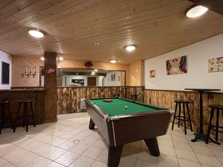 Sala de juegos con billar inglés.
