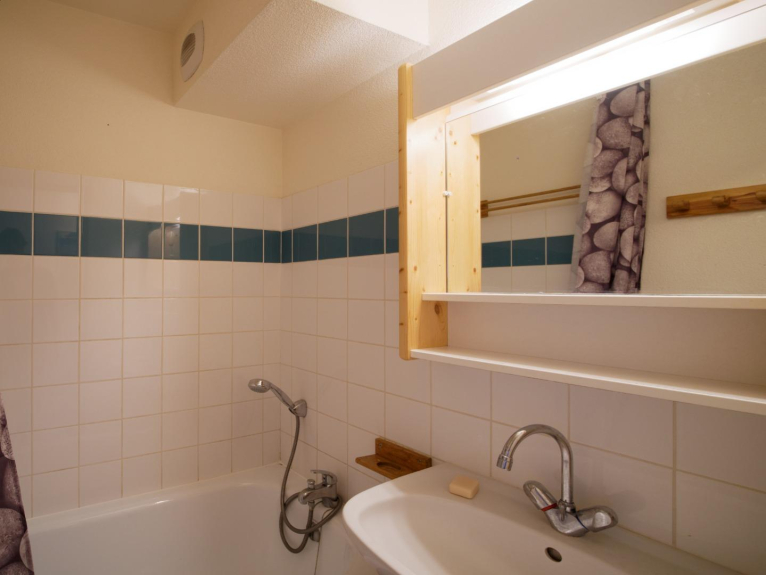 All'entrata del resort, trilocale con 1 camera da letto con 1 letto matrimoniale, 1 cabina (con una finestra e una porta) con 2 letti a castello, 1 soggiorno con un divano letto, angolo cottura con 4 piastre elettriche, frigorifero, forno a microonde multifunzione (grill), lavastoviglie, tostapane, caffettiera, bollitore, set per fonduta, babycook, ecc. 1 bagno con vasca, asciugacapelli e 1 WC separato. In totale, 6 letti e 1 letto per bambini pieghevole sono disponibili (tipo "parapluie"). Balcone con un doppio orientamento e una vista mozzafiato sul massiccio della Vanoise. Wi-Fi gratuito nel resort.