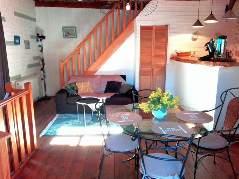 Nel centro di un villaggio classificato, un appartamento per 2 persone (ed eventualmente 2 bambini) in una casa di Bigourdane interamente rinnovata con bei materiali, (pavimenti in parquet, muri di ciottoli, mosaici) su 3 livelli. Piccolo ingresso al piano terra, con deposito per cappotti, scarpe e sci. 1° livello: Sala principale di 30 m2 con bar e cucina attrezzata. (frigorifero, forno, gas da cucina, magazzino). Un grande buffet, stoviglie per 4 persone in doppio, un tavolo e quattro sedie in ferro battuto con cuscini di seduta, un divano, un mobile TV, TNT, bella luce. Sotto la scala, bagno con doccia (doccia 1m20) in mosaico. 2° livello: grande stanza di 30 m2, dotata di un letto 140, 1 divano letto 140, un mobile con appendiabiti, scaffali per vestiti. Confortevole, VMC e riscaldamento centrale a gas. Giardino tranquillo da condividere con noi in estate, mobili da giardino, sedie a sdraio. Spazio per le biciclette. Possibilità di parcheggiare l'auto nel cortile chiuso. Tempo libero, negozi e servizi a 4 km. Escursioni dal noleggio. Bagnères de Bigorre, centro termo-ludico, musei, grotte, cinema. Scialpinismo a 15 km e pista a 18 km. (Payolle e Grand Tourmalet). Un caldo benvenuto.