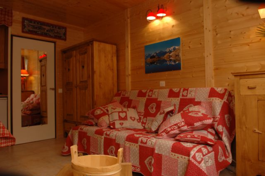 Studio di montagna 27 M2 completamente rinnovato in stile chalet di lusso, con una stanza principale con rivestimento in legno, angolo montagna e bagno. Classificazione 2 ** 4 persone ottobre 2012.