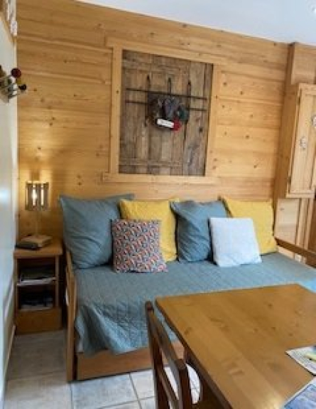 - un soggiorno con un divano estraibile con due materassi di 80 cm di larghezza (1 o 2 persone) e un televisore a schermo piatto