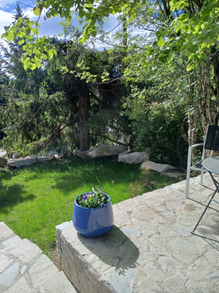 Al piano terra, la zona relax con sauna (8 persone) e kinespa (5 persone) offre anche una vista sulle montagne e favorisce il benessere. Questo spazio offre un accesso diretto a un giardino di 700m² dove, se vi alzate presto, potrete vedere i cervi o più probabilmente ammirare le buffonate degli scoiattoli.