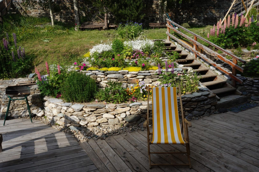Situato al piano terra di uno chalet del XVIII secolo, l'appartamento Edelweiss ha tutto il fascino del vecchio, ma con attrezzature moderne (piano cottura a induzione, lavastoviglie, cappa aspirante, ecc). Ha un'esposizione a est e a sud. Lo chalet è circondato da un giardino dove si può godere di un barbecue o, per i bambini, utilizzare le altalene. L'appartamento ha un soggiorno con una cucina aperta, una zona pranzo e una zona soggiorno con TV (TNT) e lettore DVD e una camera da letto principale con un letto di 160 cm, separata dalla zona montagna con 2 letti a castello. C'è un bagno con doccia con WC e lavabo e un bagno con doccia walk-in e lavabo. Riscaldamento elettrico individuale.