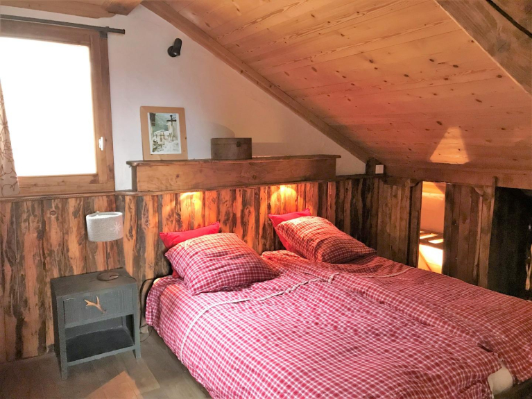 Prestigioso chalet di 7 stanze su 3 livelli, 240 m², interni con legno antico, grande terrazza soleggiata, esposizione sud-ovest con tavolo e sedie a sdraio. Vista molto bella sulla Beaufortain, la valle della Haute Tarentaise e il villaggio di Montchavin. Ampio e molto confortevole soggiorno a cattedrale con camino.