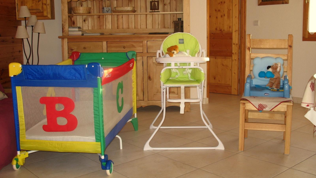 Attrezzatura per bambini: lettino con materasso supplementare, seggiolone, seggiolino, fasciatoio, bagnetto.