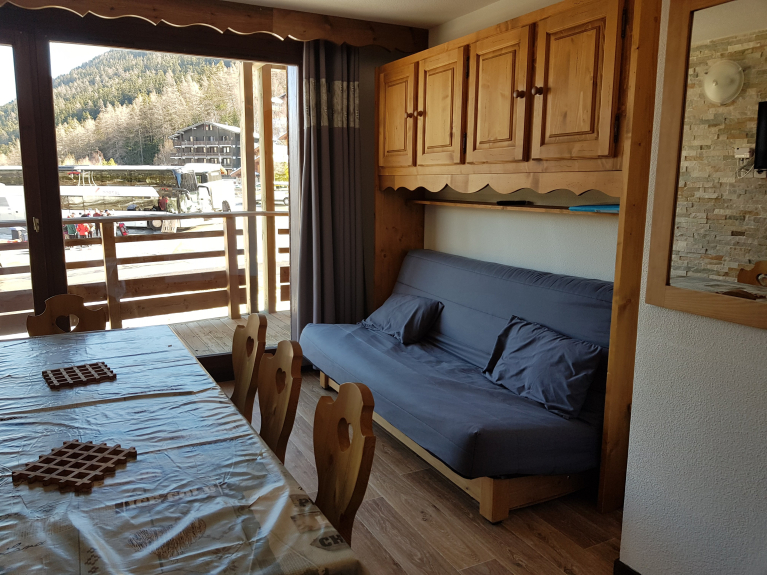 Per affittare per le vostre vacanze un appartamento molto bello e spazioso di 45m², in una zona tranquilla, a 100m dai piedi delle piste e a 50m dai negozi, con una bella vista sulla valle della Vanoise.