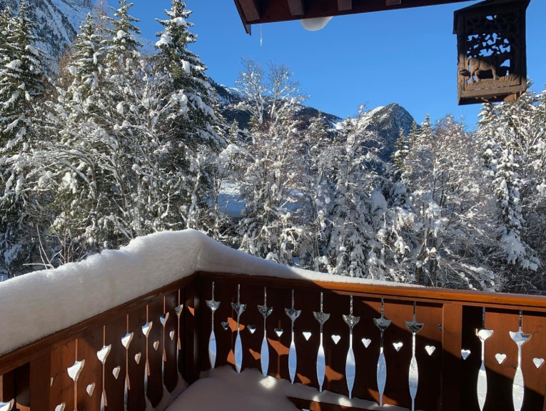 Partenza con gli sci. Posizione eccezionale di fronte alla montagna, al Doron e al giardino dello chalet.