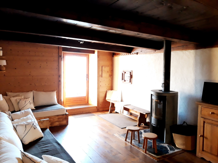 Lo chalet si trova in un piccolo borgo di vecchie fattorie, in un ambiente tranquillo, molto soleggiato fin dai primi raggi del mattino, a sud sopra il villaggio, non trascurato, all'inizio delle escursioni.