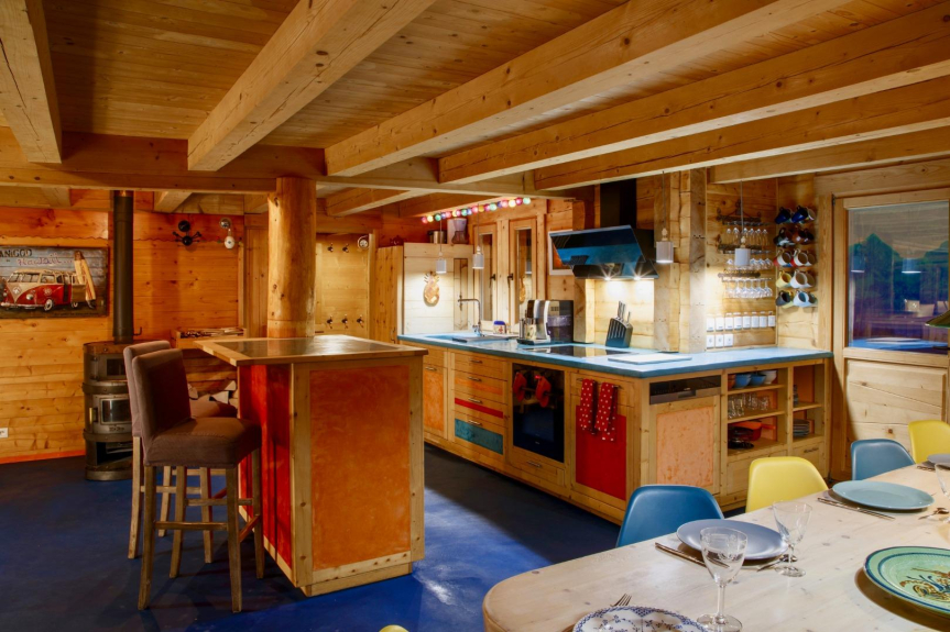 Lo chalet è in legno massiccio e ha una superficie di 300m2, è stato decorato con cura e offre molto spazio.