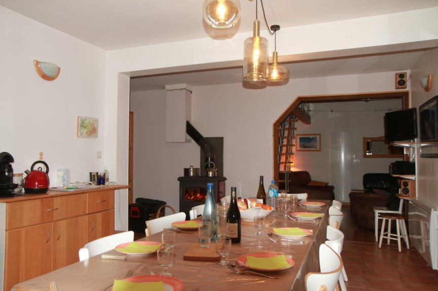 . Cucina/sala da pranzo attrezzata con cappa aspirante, lavello a una resina e mezza, lavastoviglie, frigorifero/congelatore, 2 fornelli a gas, 2 fornelli elettrici, forno elettrico, microonde, 2 macchine da caffè elettriche, 1 con filtri e 1 con capsule Tassimo con tazze individuali, tostapane, bollitore, 2 set da raclette,