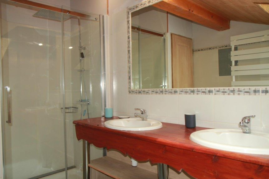 . Bagno con cabina doccia e 2 lavandini. Scaldasalviette elettrico.