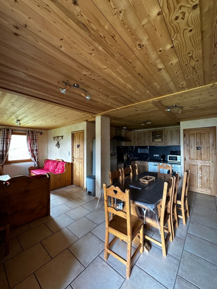 Les Fauvettes 1: affitto per 8 persone al piano terra, composto da tre camere da letto: una suite principale con un letto matrimoniale, un bagno e un WC chiuso; una camera con due letti singoli e un letto a castello; una camera con un letto matrimoniale e un letto singolo. Un grande soggiorno a forma di "L" con una cucina-sala da pranzo e una zona relax. L'appartamento è decorato in stile montano.