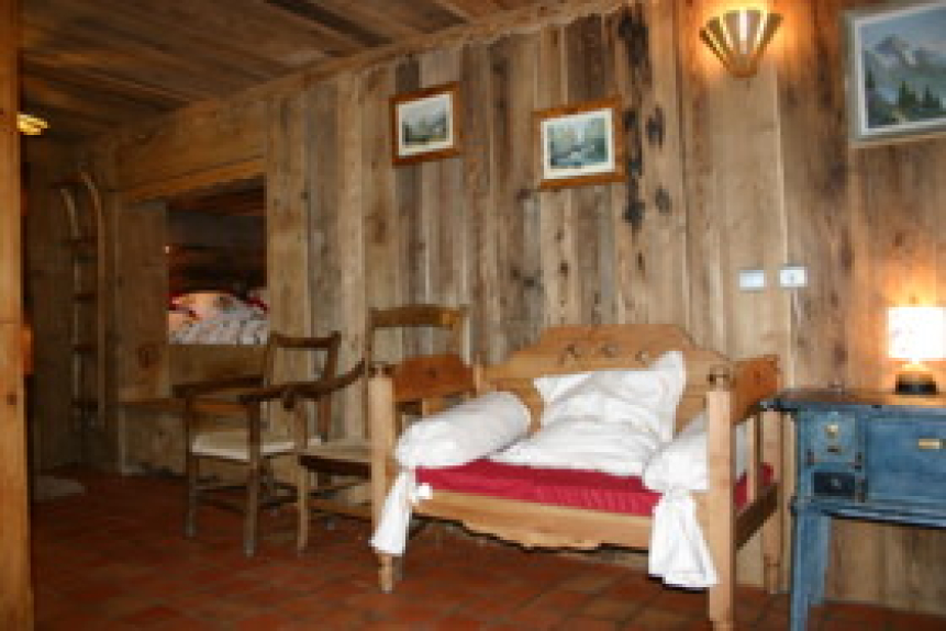1 "letto da pastore" (chiuso su 3 lati) 160 x 200cm chiuso da una tenda, con piumino, cuscino e 2 cuscini