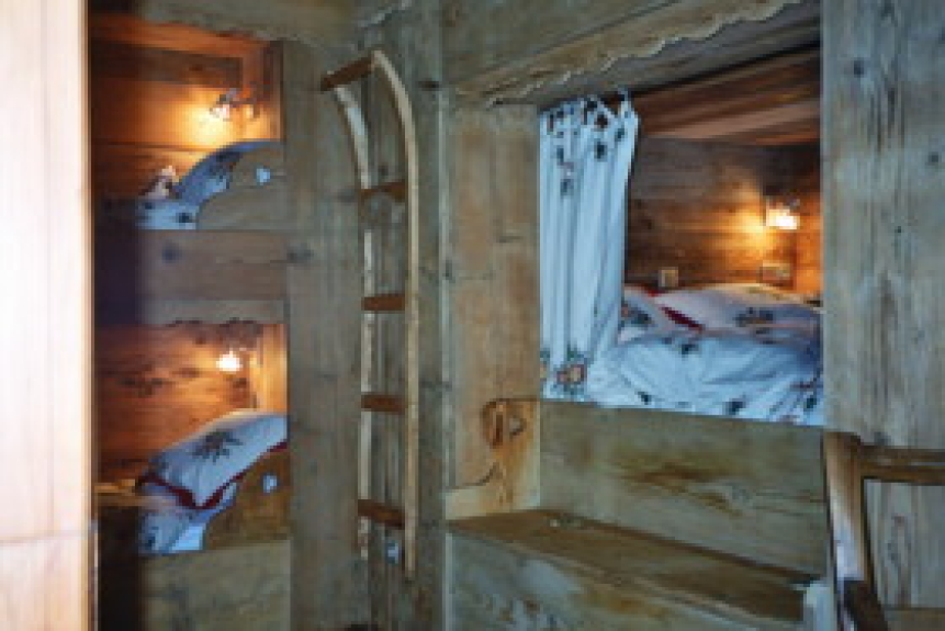 2 letti a castello (chiusi su 3 lati) 90 x 200cm (chiusi da una tenda) con piumino, materasso e cuscino