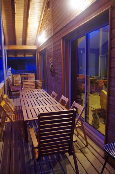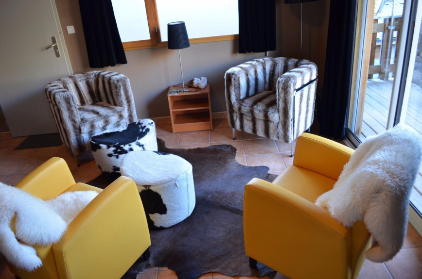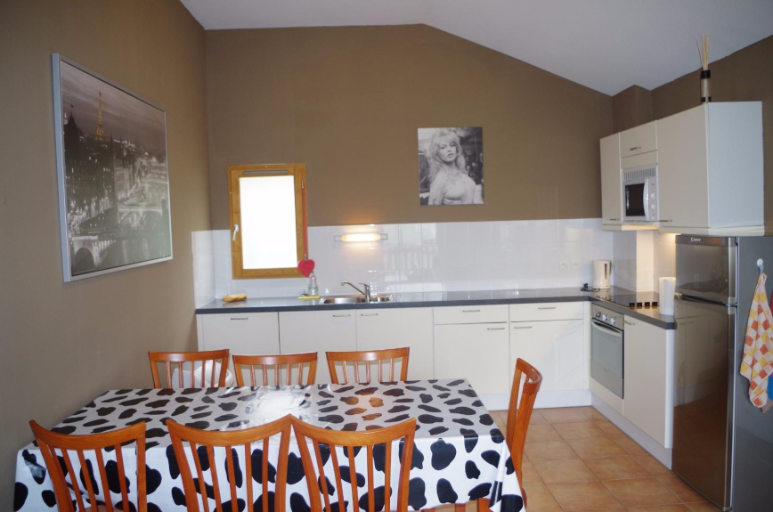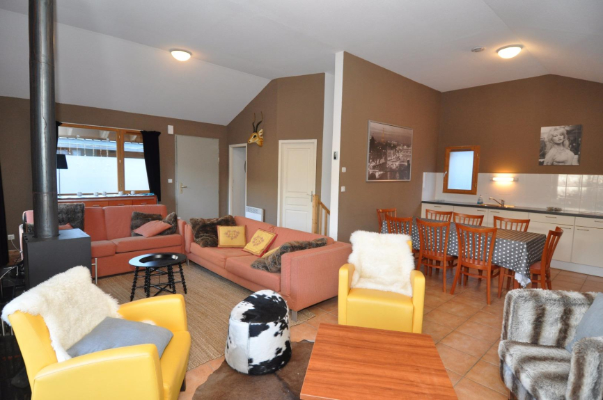 grande soggiorno di 42 m² che dà sul balcone (30 m²) con stufa a legna e cucina americana attrezzata con vero forno, microonde, lavastoviglie, frigorifero, congelatore, piano cottura in vetroceramica, raclette, pierrade, friggitrice, macchina per caffè espressoo....