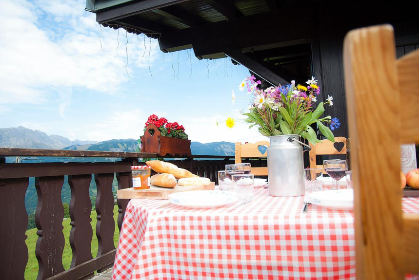 Sul lato sud dello chalet c'è un grande balcone/terrazza (40 metri quadrati). Da questo balcone e dal giardino c'è una magnifica vista sulla catena montuosa degli Aravis e sulla valle sottostante.