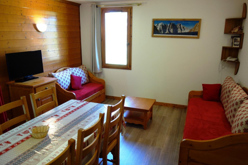 L'appartamento di 43 m², situato al 2° piano, dispone di 2 camere da letto (1 camera con letto matrimoniale, 1 camera-cabina con 2 letti a castello), 2 bagni (uno con doccia, uno con vasca), 1 WC separato, 1 soggiorno (con divano letto estraibile, televisione) che si apre su una cucina attrezzata (microonde/grill, piano cottura in vetroceramica, lavastoviglie) e un balcone (tavolo + 4 sedie esterne) Parcheggio privato molto grande nel seminterrato (2 auto) + 1 armadietto per gli sci.