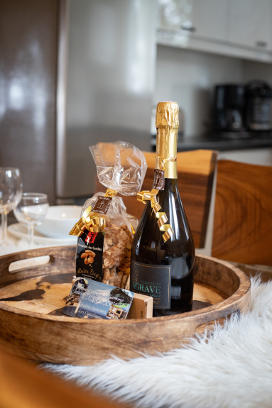 Offriamo a ciascuno dei nostri ospiti varie attenzioni (tè, cioccolato, capsule nespresso, dolci...) come benvenuto allo chalet.