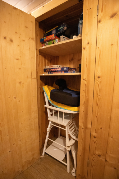 Tutto il necessario per la manutenzione dello chalet: materiale di pulizia: prodotti, aspirapolvere, scopa, secchio, stendibiancheria, ferro e asse da stiro, spazzacamino...