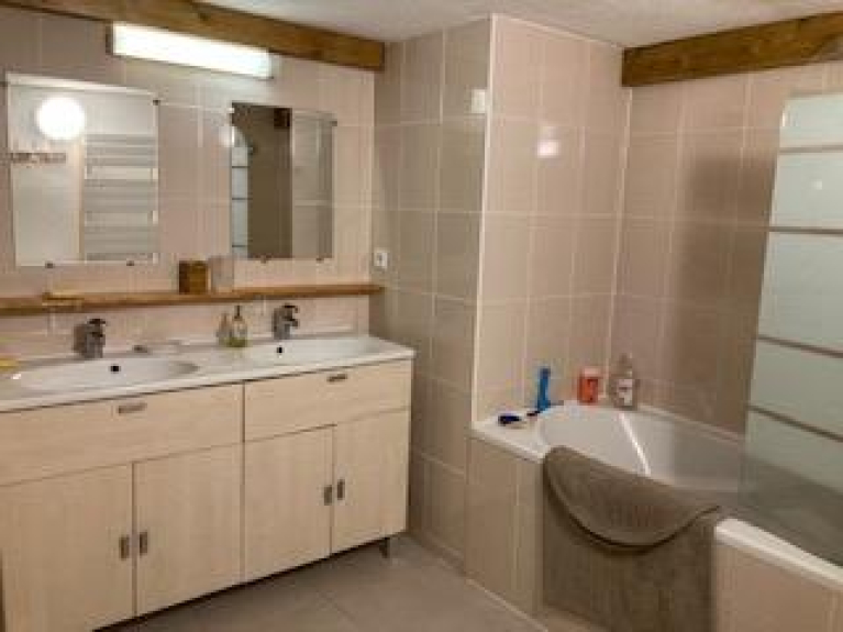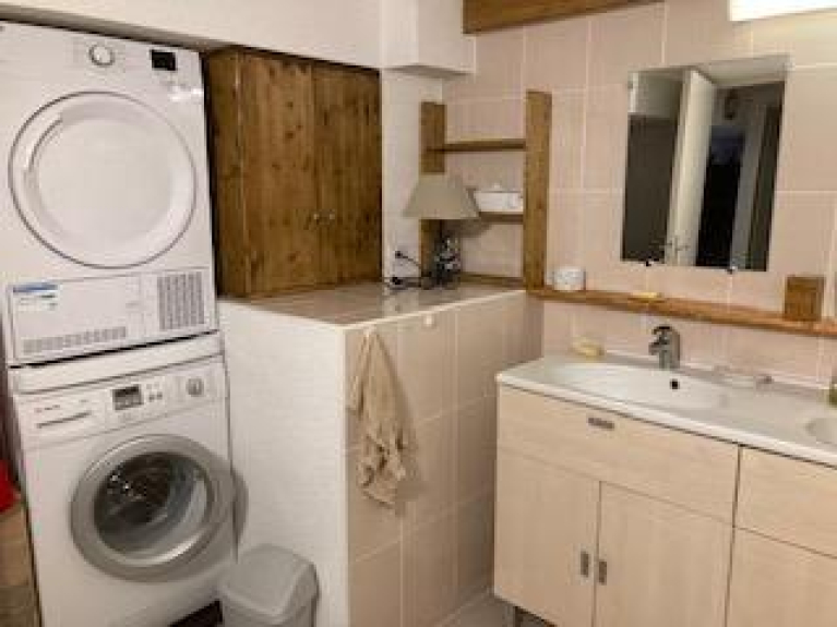 Due camere doppie con letti matrimoniali e una cabina con quattro letti singoli. Due grandi bagni. Due bagni separati. Un grande soggiorno/sala da pranzo che si apre sul balcone con vista panoramica sulle montagne e sulla località. Al piano terra c'è un deposito sci/scarpe e una lavanderia.