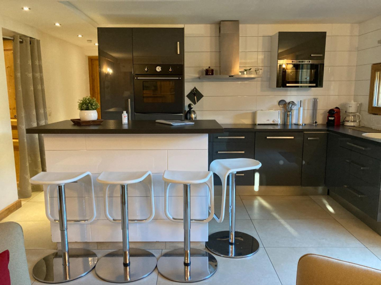 Questo appartamento elegantemente decorato è esposto a sud e molto ben attrezzato.