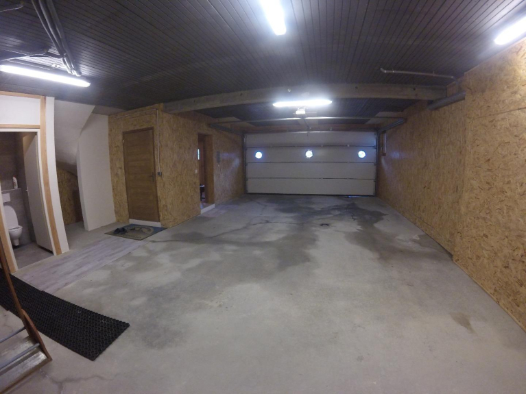 Un grande garage al piano terra con porta elettrica per un parcheggio spensierato...