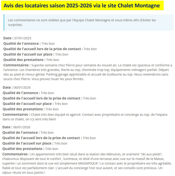 Appartamento-chalet sulle piste, situato vicino al centro del resort con un superbo balcone rivolto a ovest, al 2° e ultimo piano, per 8 a 9 persone: 5 camere 115 M2 decorate con pavimento in parquet, 4 camere da letto da 16 a 12 M2 (piumoni e lenzuola forniti) e soggiorno-sala da pranzo-cucina di circa 38 M2, 2 bagni, bagno e bagno con doccia con asciugacapelli, lavatrice-asciugatrice, soggiorno in pelle 6 posti, 2 TV LCD 82 cm, Box wifi per My Canal / NetFlix se abbonamento, DVD, sound bar Bose, hifi, Hub carica rapida 5 smartphone o compresse, 4 grandi armadi, cucina completamente attrezzata, Nespresso, lavastoviglie, bollitore, set completo di stoviglie 3 x 18 pezzi, tavolo 10/12 coperti, videoteca, camino, riscaldamento a pavimento (14) e convettori inerziali in ghisa, soffitto alto con travi, armadietto per gli sci, parcheggio coperto gratuito. Appartamento per non fumatori - Wifi gratuito - Massimo 5 etichette Flocons Gold nel 2018. Prezzo settimanale comprensivo di fornitura di lenzuola, coperte e piumini + pulizia (tranne cucina e stoviglie) + controllo qualità.