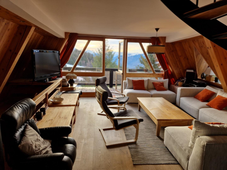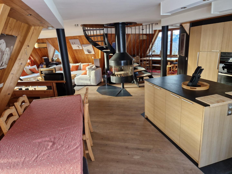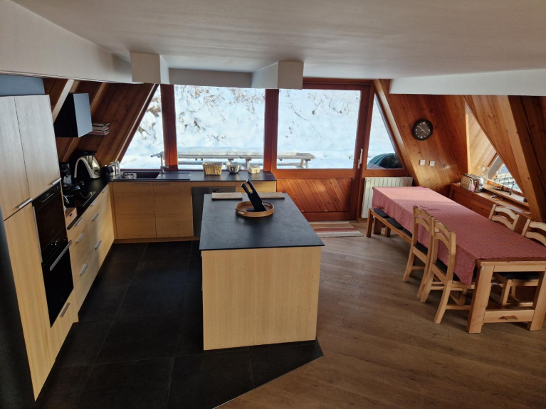 Situato ad Arc 1600, zona Paradiski, questo chalet gode di una posizione soleggiata con vista sulla valle e sul Monte Bianco, una posizione tranquilla ed eccezionale sulle piste (ski in/ski out). Moderno, originale, 220 m2 su 3 livelli, caldo, ideale per famiglie, progettato per 14 persone, dispone di 6 camere da letto, 3 bagni, ampio soggiorno con camino centrale e cucina integrata, terrazza, ski-room, Internet, ed elettrodomestici completi. Negozi a 5-10 minuti a piedi. Settimana invernale da 3000 a 6000 € a seconda del periodo. Possibilità di affittare le lenzuola sul posto. La salita e la discesa dei vostri beni è fatta in motoslitta.