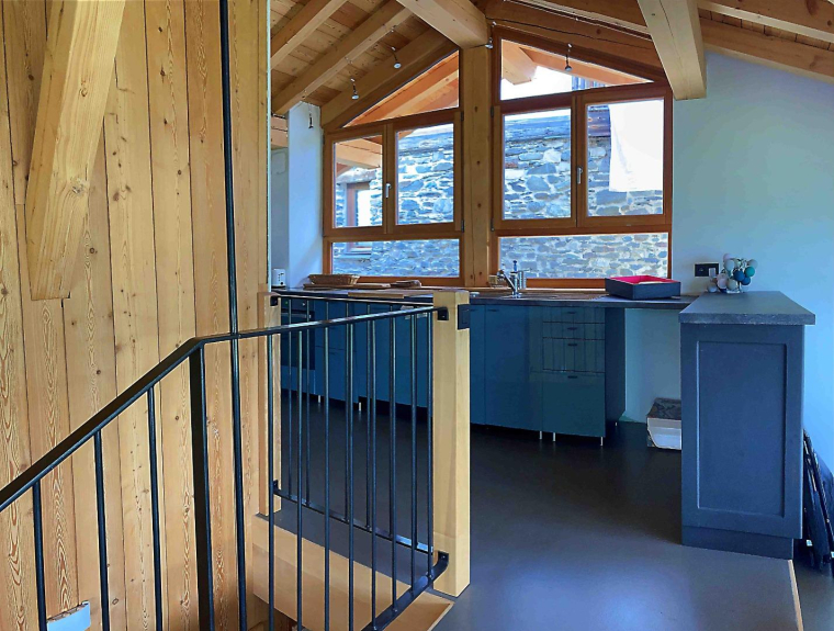 L'appartamento è adiacente a un altro appartamento simile e può ospitare 14 persone in stile chalet familiare.