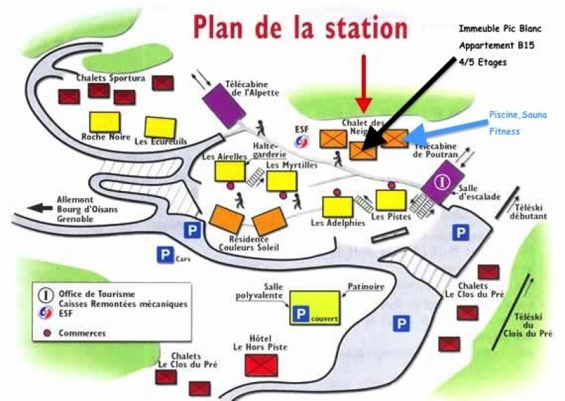 Oz en Oisans resort situato a 1350 m di altitudine, piatto ai piedi delle piste a 100 metri dalla funivia Alpette che collega il Pic Blanc a 3300 metri sul Grand Domaine Alpes du Huez Ski.