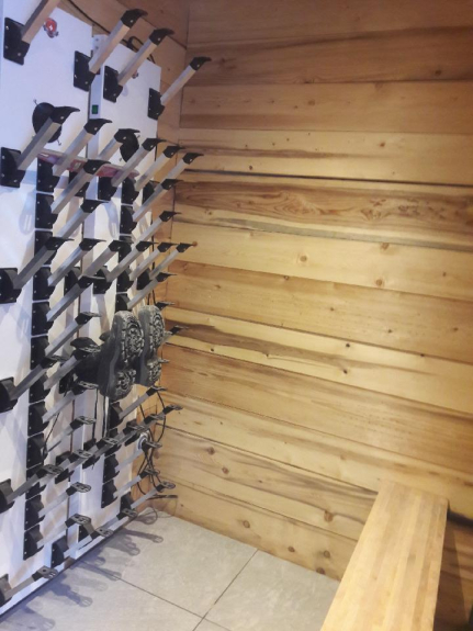 - Su questo livello troverete un bel guardaroba riscaldato dove potrete asciugare i vostri vestiti da sci e i vostri scarponi grazie a 2 asciugatori elettrici per scarponi e guanti.